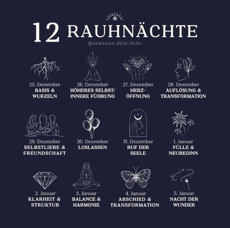 Ihr werdet schon was passendes finden.. es gibt so toll generierte Angebote – zwischen gratis und 188 Euro ist für jeden was dabei. Von den Astro Rauhnächten, über die Rauhnacht Challenge über Magie bis hin zu Rauhnacht Yoga.