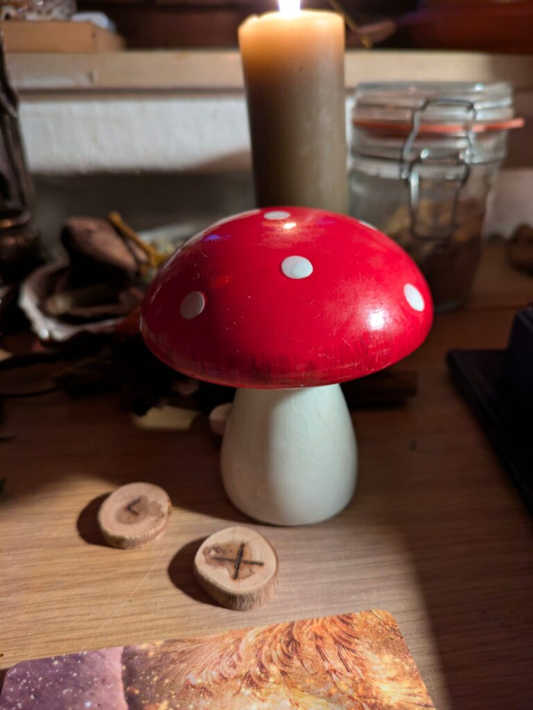 Zusätzlich ziehe ich noch eine Rune. Die haben mich dieses Jahr mehr gerufen, als das Tarot. Selten sehe ich so oft Runen auf meinem Weg wie in den letzten Tagen, als Äste auf meinem Weg oder irgendwo als Symbole im Alltag.